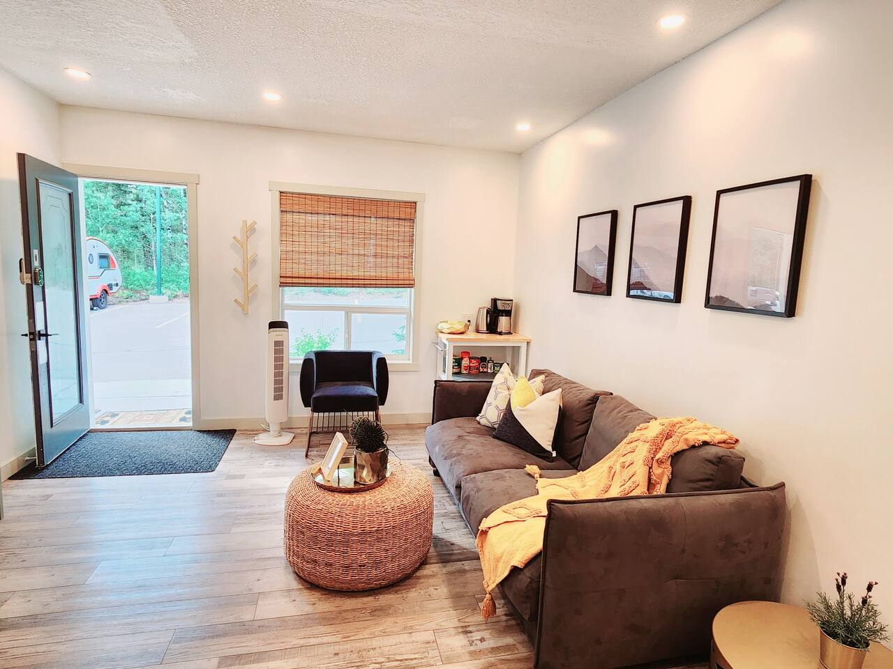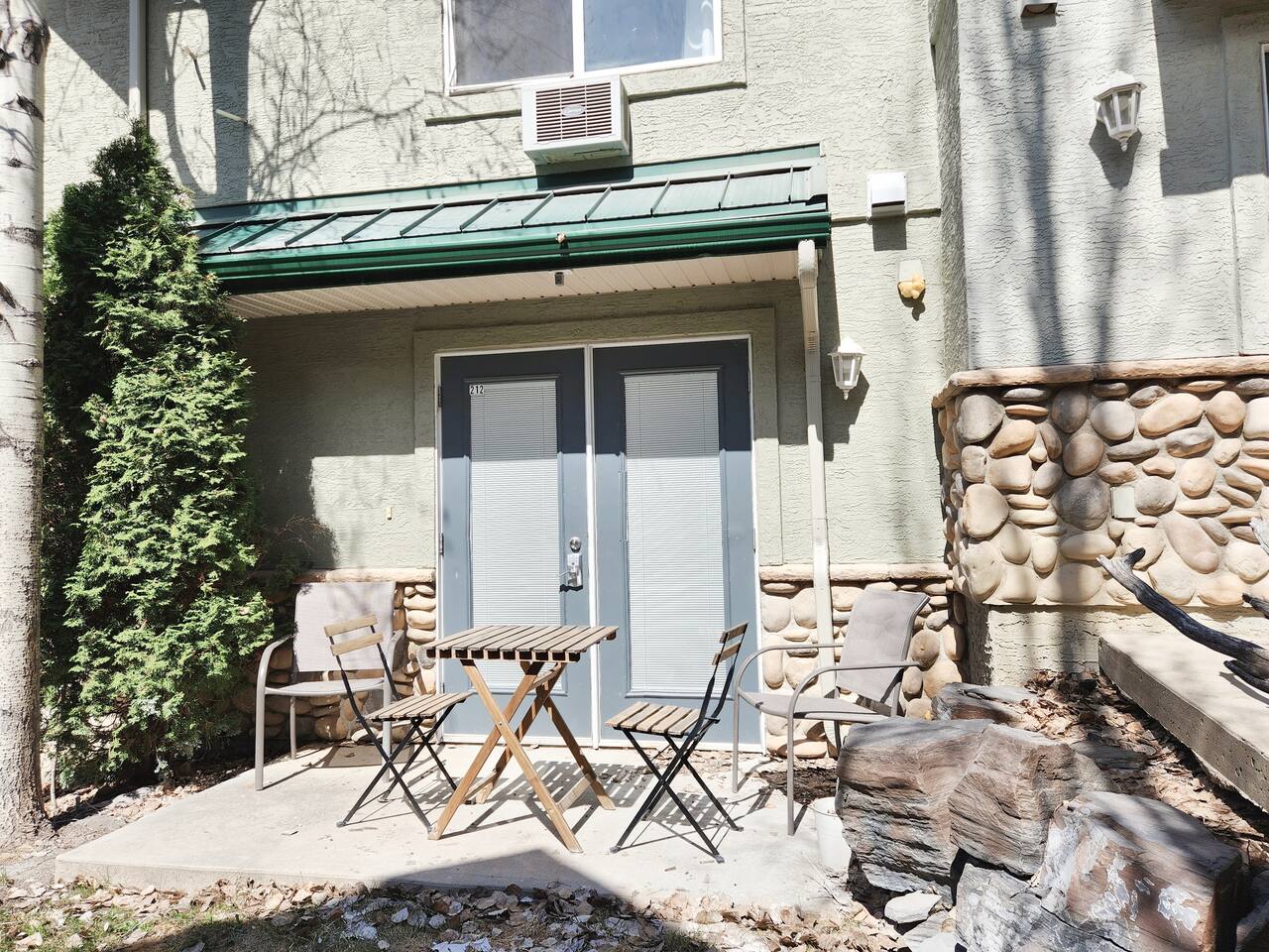 Townhouse | 800 Sqare Feet | Keyless entry Bedroom 1: Queen bed + foldable twin cot Bedroom 2: Queen bed Living room: Queen-size sofabed Luxury down filled duvets and memory foam mattresses ensure exceptional comfort. Fully Equipped Kitchen: Fridge, microwave, stove & oven, cookware, dishware, glassware, silver ware, brita, toaster, salt & pepper - cook and dine just like home. 2 Full Bathrooms: One with a tub-shower combo, one with a shower. Stocked with shampoo, conditioner, body soap, lotion, face wash, Dyson hair dryer, cotton pads, and more. Coffee bar: Ninjia Pods & Grounds coffee maker, ground coffee supplied. With the provided coffee beans and burr mill, why not take your time to enjoy an incredible coffee? Tea for tea lovers, and instant coffee to fuel busy mornings. Extra Comforts: In-suite laundry Smart TV Free parking High speed network for remote working Bedrooms with door locks for privacy Family-friendly: high chair & playpen Picnic table, Firepit and outdoor BBQ furnaces - shared among all guests in the resort